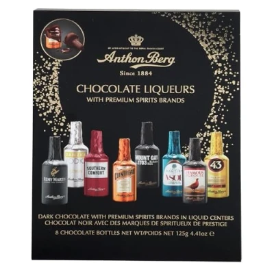 PREMIUM SPIRITS: Indulge in Anthon Berg’s decadent dark chocolate bottles filled with premium liqueurs from renowned brands such as Famous Grouse, Cointreau, Drambuie, Remy Martin, Licor 43 etc QUALITY CHOCOLATE: Made with premium 50% dark chocolate for a perfect taste experience and a delightful balance between the cacao and the liquid filling. Experience the perfect fusion of rich, crisp chocolate and smooth, liquid centres VARIETY: Anthon Berg Chocolate Liqueurs has the broadest selection of flavor experiences. There is no boring choice, only the thrill of discovering something unexpected. So, raise a toast to laughter, to stories worth sharing, and to conversations that linger long after the last bite GIFT IDEA: Treat someone special to this decadent set of chocolate liqueurs that combine rich chocolate with the finest spirits ASSORTMENT: A pack of 8 handpacked chocolates offering a delightful mix of flavours from renowned spirits brands for an exquisite taste adventure