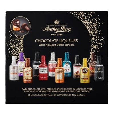 PREMIUM SPIRITS: Indulge in Anthon Berg’s decadent dark chocolate bottles filled with premium liqueurs from renowned brands such as Famous Grouse, Cointreau, Drambuie, Remy Martin, Licor 43 etc QUALITY CHOCOLATE: Made with premium 50% dark chocolate for a perfect taste experience and a delightful balance between the cacao and the liquid filling. Experience the perfect fusion of rich, crisp chocolate and smooth, liquid centres VARIETY: Anthon Berg Chocolate Liqueurs has the broadest selection of flavor experiences. There is no boring choice, only the thrill of discovering something unexpected. So, raise a toast to laughter, to stories worth sharing, and to conversations that linger long after the last bite GIFT IDEA: Treat someone special to this decadent set of chocolate liqueurs that combine rich chocolate with the finest spirits ASSORTMENT: A pack of 16 handpacked chocolates offering a delightful mix of flavours from renowned spirits brands for an exquisite taste adventure
