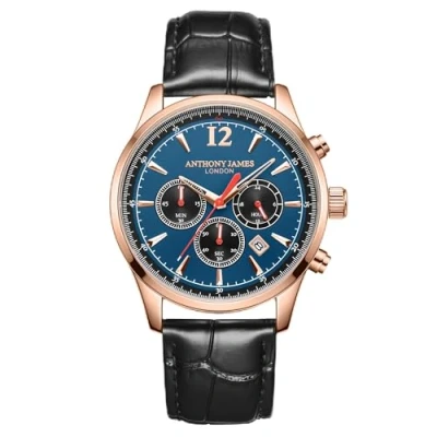 Anthony James Classic Wrist Watches Men Stainless Steel Back, Analogue, Leather Strap, Chronograph, Hand Assembled, Water & Scratch Resistant Men's Watch 5 Years Warranty, Rose Blue