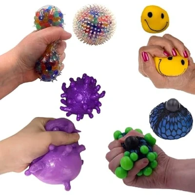 ANTI-STRESS - Vent out, calm down and relax by squeezing these squidgy balls. Each one is in a different design, so you can pick the one that suits your mood best that day. HAND EXERCISING - Get active and get some exercise. These balls are great for training your wrist and forearm. Just squeeze away! DURABLE MATERIAL - These balls are made from strong, durable materials that will not rip easily. They will not withstand rubbing or poking with ones nails or thrown hard against the wall or floor. 4 DIFFERENT BALLS - A soft, yellow Smiley ball with a big Smiley Face on it. A Multi-Coloured "Splatter" Stress Ball, A Mesh Grape Ball that changes colours as you squeeze it and our Soft Smooth Stress Ball in white and Green., Manufacturer: PLAYLEARN