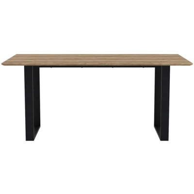 Modern U-Shaped Leg Design: Features sleek black metal U-shaped legs that provide a contemporary industrial look and sturdy support. Stylish Wood Effect Top: The durable wood effect surface adds warmth and charm while offering ample space for dining or gatherings. Comfortable 6-Seater: Generously sized to comfortably seat six people, perfect for family meals or entertaining guests. Durable & Stable Construction: High-quality materials ensure long-lasting durability and stability for everyday use. Industrial & Contemporary Aesthetic: Combines modern design with practical functionality, complementing a variety of interior styles. Versatile Use: Ideal for dining rooms, kitchens, open-plan spaces, or as a multifunctional table for work and meals.