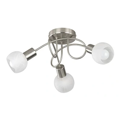Antibes ceiling light in metal matt nickel and with lenses in alabaster-coloured white lamp exclusive bulbs. Matching light bulbs 3 x E14 max. 28 Watt . The light has a diameter of 47 cm. . No bulb included