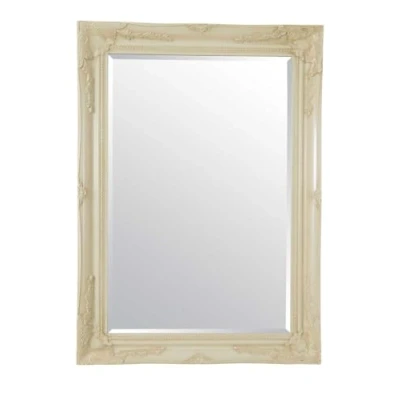 Large Ivory / Cream classical hand finished french style Antique design wall mounted mirror boasts ornate detailing in all four corners and sides and comes with premium bevelled mirror glass. This particular mirror has a glass size of 3ft x 2ft, 91cm x 61cm and has an overall size of 3ft8 x 2ft8, 110cm x 79cm. Classical Antique Style Wall Mirror Which Can Be Hung Either Portrait or Landscape. Do Not Use String to Hang This Mirror, Please Use Heavy Duty Fixings. Create a Classical Statement for your Lounge, Dining room, Bedroom or Kitchen. We stock this frame in 5 different colours white black gold silver and ivory and 5 different sizes. Explore MirrorOutlet Full Range of Venetian, Antique and Classical Full Length Leaner and Wall mounted mirrors