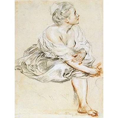 Antoine Watteau Kunstdruck "sitzende junge Frau", großer