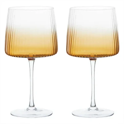 Harts of SturThe Anton Studio Designs Set of 2 Empire Gin Glasses in Amber adopt the style of the classic Empire range. They have an elegant ombre design to them, with a ridged, mouth-blown bowl and a thin, delicate stem that meets a flat base of the bowl, which adds to the sophisticated style of these glasses.The gracefulness of the Empire Gin Glasses in Amber is what makes them truly remarkable and classy. These glasses look great when paired with others from the Empire range and bring a refined look to your table setting. They also make a lovely sentimental gift for a loved one.Made from 100% GlassHand wash recommendedCapacity: 700ml
