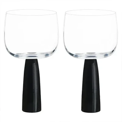 Harts of SturElevate your table setting with the Anton Studio Designs Set of 2 Oslo Gin Glasses in Black. These Oslo Gin glasses have a contemporary, Scandinavian style, achieved with the thick, solid-glass stem that in itself brings a modern flair, combined with the well-rounded bowls and ice base.The simplicity of the Oslo Wine Glasses in Black is what makes them truly remarkable and unique. Available in gloss black and frosted white, these glasses look great when paired with others from the Oslo range, or make a lovely sentimental gift for a loved one.Made from 100% GlassHand wash recommendedCapacity: 500mlWeight: 475g