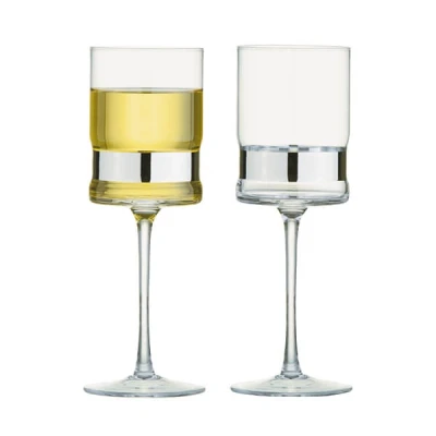 Harts of SturThis set of 2 Anton Studio Designs SoHo Wine Glasses in Silver are mouth blown and hand crafted by skilled craftsmen. Each contemporary and stylish wine glass features a bright silver band recessed within each bowl. The SoHo wine glasses make a wonderful gift for couples and are ideal for serving drinks at special occasions. Dimensions: 7.7 x 7.7 x 22.5 cm. Each wine glass holds a 350ml capacity.