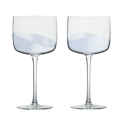 The Anton Studio Designs Wave Set of 2 Gin Glasses feature a modern design with a flowing silver metallic design. Mouthblown and hand crafted these glasses feature a tall and elegant stem.Softly swirling through the glass, the silver elements gleam with a polished brilliance, creating a reflective, mirrored surface for the design.Ideal for serving guests their favourite gin combinations these gin glasses are great for gifting as part of the Wave collection, with other matching items sold separately.Each of these gin glasses have a 550ml capacity and are suitable for hand washing.Size: 20(H) x 9.5(W) x 9.5(L)cm.