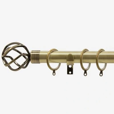 Antqiue Brass 28mm Cage Fixed Length Metal Curtain Pole