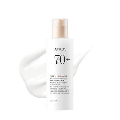 ANUA Rice 70 Intensive Moisturizing Milk, Lotion for Deep Hydration and Nourishing, Glowy Glass Skin, Water, Niacinamide, Ceramides, Lightweight, 150ml/ 5.07 fl.oz.