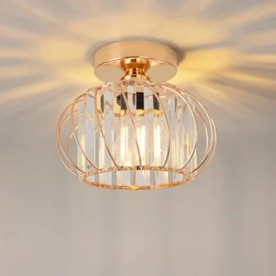 ANWIO Chandelier Lampshade,Gold Light Fittings Ceilings,Ceiling Lights Living Room Modern,Led Crystal Kitchen Chandeliers,Hallway Ceiling(E27 Base,NO Bulbs,LAMP DIAM 22.5CM)