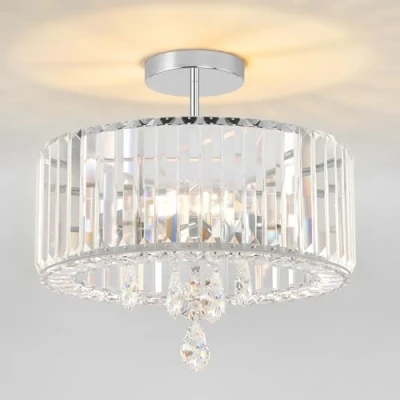 Flush Mount Ceiling Light:Unique crystal decoration,looks very luxurious and beautiful.The chandeliers ceiling light is high quality,creative design,indoor flush ceiling light creates a comfortable and warm atmosphere for your house. Ceiling light shade Size:Hallway lighting shade diameter: 365mm-Whole light size 365*365*270 MM -base Plate Diameter:120mm.The ceiling lights living room fits standard E27,compatible with E27 Light Bulbs,3 screw bases(BULB NOT INCLUDED), 60 watts max,AC 220-240V. Modern Crystal Chandeliers:This light fittings ceilings is also fully dimmable when used with a dimmable bulb and dimmer.You can choose different style bulbs and color temperatures to create different atmospheres,Suggest using room space of 12-20 ㎡. Wide Application :This hallway ceiling light is made of high quality sturdy metal frame and top grade crystals,durable and long-lasting.You can install it into hallway,bedroom,dining room,living room,kitchen,cafe,foyer etc. Easy to Install:This crystal ceiling lamp can make a thoughtful gift for a trendy friend or loved one who needs a little extra light in the home.All accessories are included,very easy to install.