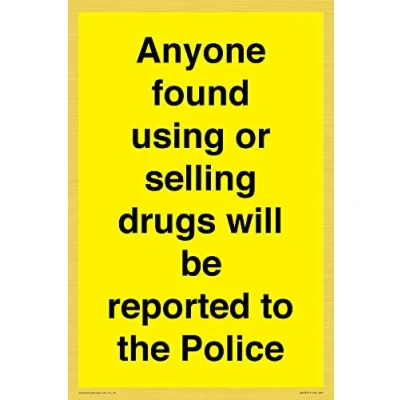 Anyone found using or selling drugs will be reported to the Police Sign 200x300mm A4P