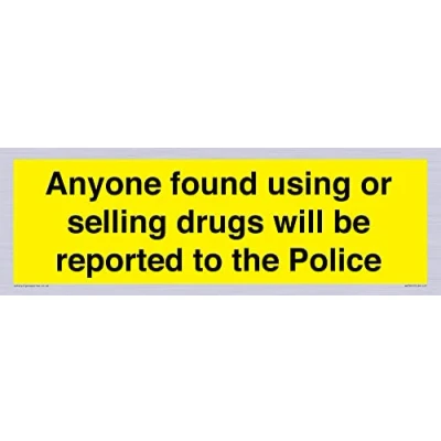 Anyone found using or selling drugs will be reported to the Police Sign 450x150mm L41