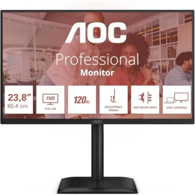 AOC 24E4CV 24 Inch FHD Monitor, 120Hz, IPS, 4ms GtG, Adaptive Sync, HDR Mode, Height Adjustment, Speaker, (1920x1080,HDMI 1x 1.4,DP 1.2 USB Hub) Black
