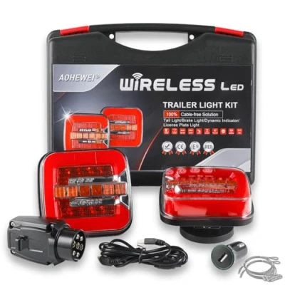 AOHEWEI Magnetic Wireless LED Trailer Tail Lights Set 12/24 V, Cable Free Waterproof Dynamic Rear with Magnet ECE EMC Approved for Trailer, Lorry, Caravan or Truck