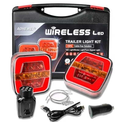 AOHEWEI Magnetic Wireless LED Trailer Tail Lights Set 12/24 V, Cable Free Waterproof Dynamic Rear with Magnet ECE EMC Approved for Trailer, Lorry, Caravan or Truck