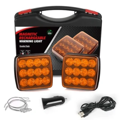 AOHEWEI Wireless LED Warning Lights Amber, 12 V/24 V Magnet Rear Flashing Lights, Rechargeable Emergency Strobe for Truck Vehicle