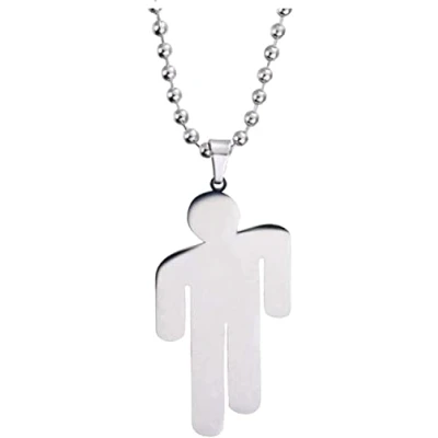 Material: High Quality Stainless Steel, Highly Polished, Safe and Secure. Size: chain (29.5cm), pendant (4.6 x 2cm). Modeling: naughty, creative, cool and personality, it looks really stylish and personalized. Jewelry necklace for fans, family, friends who love Bili and supporting Billie Eilish together. Quality guarantee: Fashionable necklaces made of selected durable materials are strong, durable and long-lasting, which can accompany you for a long time and always retain the unique sense of clothing.