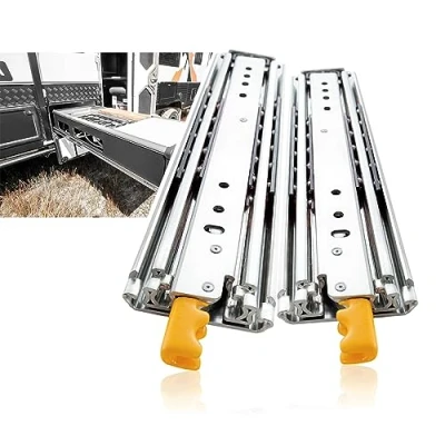 【Lock Drawer Slides & Non-removable 】Press the yellow handles on both sides at the same time to lock and unlock the drawers, they can be locked when fully closed and fully opened to prevent sliding. Locking slides can be used in shelves, cabinets, industrial drawers, RVs, trucks, vending machines, etc. 【Max Load Capacity 500lb】 AOLISHENG heavy duty drawer slides are made of 2.5mm thick Q235 thick steel plate, high-strength, high-density high-quality cold-rolled steel. It can support heavy load storage without deformation, and the bottom is equipped with a limited rubber pad, which is made of ABS plastic, with good wear resistance and impact resistance. After testing, the number of opening and closing times has reached more than 200,000 times. 【Full Extension Slide Rail, Double Anti-rust】The drawer can be fully pulled out for convenient storage of items. The surface of the slide rail is treated with galvanized blue sealing process, which isolates the rail from direct contact with air and water, and increases anti-oxidation and anti-corrosion. Easy to clean and wide range of utility. 【Notes on Slide Rails】 1. In order to ensure the safety of users, the heavy-duty slide rails cannot be disassembled. 2. The locking mechanism can only take effect when the drawer is fully closed or fully opened. 3. Due to different usage scenarios, this product does not contain screws. You can buy M6 screws yourself. 4. The slide rail starts from 18 inches, and the weight is reduced by 10lb for every two inches of increase. 【Installation Requirements】 Size: 12"(304.8mm); Full extension length: 24"(709.6mm); Width: 3 inch( 76.2mm); Installation clearance: 0.76"±0.01"(19.2mm±0.3mm). Same clearance on both sides. Approximate length of yellow lock : 1.18"(30mm). You can choose the size of the rail according to the depth of the drawer. The length of the slide should be ≦ The length of drawer. Please choose the right size before you purchase., Manufacturer: AOLISHENG