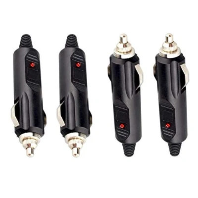 4Pcs Car Cigarette Lighter Male Socket LED Indicator: Let you easy to check whether the connection is successful and allow quick and easy usage in the dark or at night Max Current: 5A; Suitable for voltage: DC 12V to 24V High temperature resistant material,With red LED indicator light; Built-in 5A glass fuse, This plug is applicable to any onboard electrical appliances Car Inverter,Air Pump,Electric Cup,Car Audio,Car MP3 Power Supply,etc