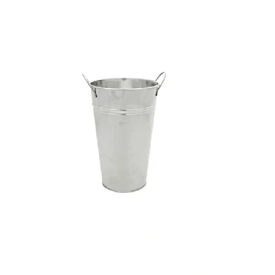 Bring a charming rustic flair to your home decor with these decorative metal flower vases. Pair them with real, artificial flowers or plants to complete the vintage french country look Premium quality metal buckets. Each vase is 16cm Diameter x 25cm Height (10 Inch) tall. Made of heavy-duty galvanized zinc Set of 1 The durable 4-point connected handles on the Flower Pots make them as functional as they are elegant. Suitable for both Indoor and Outdoor Use