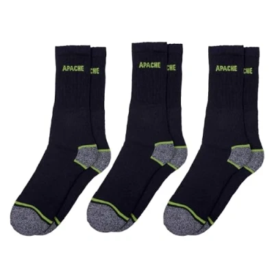 QUALITY MATERIALS: Apache's burlington work sock, crafted from 73 percent cotton, 24 percent hydrovent, 2 percent elastane, and 1 percent nylon, offers a perfect blend for enduring comfort throughout your workday SECURE FIT: Featuring an inturned cuff and 'stay put' leg, these socks ensure a secure fit. The full terry cushioning in the foot adds extra comfort and support where you need it most MOISTURE WICKING: Hydrovent moisture control and Pureco anti-bacterial treatment keep your feet dry, breathable, and fresh. Elevate your workwear with Apache's Burlington work sock, a valuable addition for lasting comfort and performance APACHE WORKWEAR: The Apache brand of safety footwear and workwear was established back in 1999, we pride ourselves on giving our customers products that are stylish, technical and fit for purpose 0