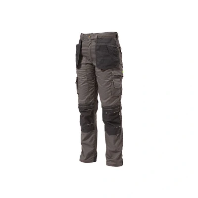 Apache Workwear Men's Site Trousers APKHT Polycotton Holster Trouser Grey/Black 40W x 33L Cordura Side Cargo Pocket Low Rise Comfort Waist Reinforced Hem Knee Pad and Phone