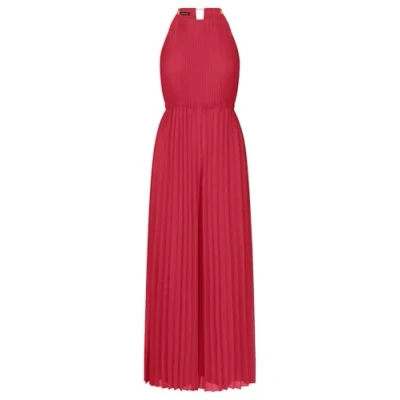 APART Fashion Women Pleated Jumpsuit Chiffon Halter Wide Leg Elastic Waist Chain Strap Detail Evening Party Outfit Stylish Wedding Guest Dress Red