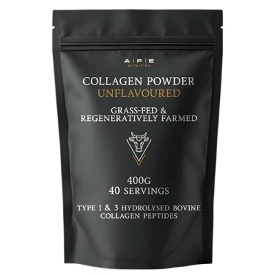 100% GRASS-FED & FINISHED: Our collagen comes from a regenerative farm where the cattle roam freely on pasture consuming a natural diet of grass. This ensures you get the highest quality collagen for the best possible results. SOURCE OF PROTEIN: APE Collagen is a high-quality protein source, with 9.2g per 10g serving and 0 carbohydrates, that fits into ketogenic and carnivore diets, promoting wellness through nutritional benefits. 40 SERVINGS: Each pouch contains 400g (40 x 10g servings) which sets us apart from many other popular brands, typically offering much smaller pack sizes.Consume 10-20g per day. Hot and cold soluble, as well as odourless and flavourless, our grass-fed collagen peptides blend really well and can be mixed into a wide variety of drinks or meals. SKIN ELASTICITY & TONE: Making up 70-80% of our skin, collagen has become well known for its skin benefits. Incorporating our grass-fed bovine collagen peptides into your routine can improve skin elasticity and tone, giving skin a hydrated look. STRONGER HAIR & NAILS: Collagen protein plays an important role in helping grow, strengthen and protect, support bone health & hair quality. RECOMMENDED BY NUTRITIONISTS: Registered nutritionists highly recommend this product for its health benefits, including; improved skin elasticity and tone, stronger nails and hair, gut health (leaky gut repair), as well as joint health and mobility.