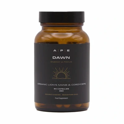 APE Nutrition Dawn Organic Cordycep Lion’s Mane Mushroom Blend Capasules (80 Capsules) Certified Organic, Improve Energy Focus & Memory, UK Supplements, 100% Pure No Filler