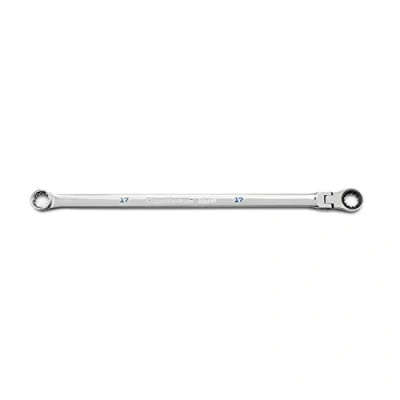120XP Ratcheting Box-End with 120 Positions Gives a 3° Swing Arc Universal Spline Drive Works on 12-point, 6-point, Rounded 6-point, Spline, E-Torx and Square Fasteners Ratcheting Flex-Head Box-End Gives Adjustable Access Angle 0° Offset Non-Ratcheting End for Breaking Loose Fasteners Extra-Long Beam Length for Increased Access, Leverage & Torque.Bright, Full Polish Chrome.Highly Visible Recessed Color Markings for Visibility