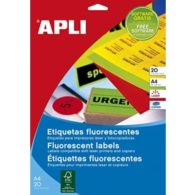 APLI 015076 Pack of 280 Labels 99.1 x 38.1 mm Laser/Copier Neon Yellow