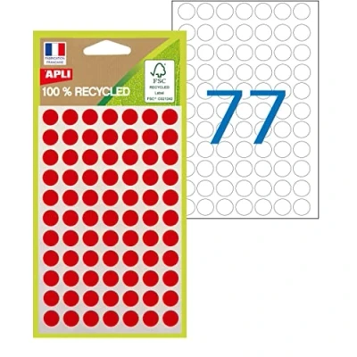 APLI 101779 100% Recycled Coloured dots, 462 Diameter: 8 mm, Colour: red.