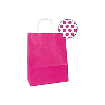 Amazon MarketplaceKraft bags in fuchsia size 32 x 16 x 39 cm Bags made of 100gsm kraft paper, high tear resistance and curly handles for easy transport Reusable and recyclable bags, ideal for any trade Each pack contains 50 bags