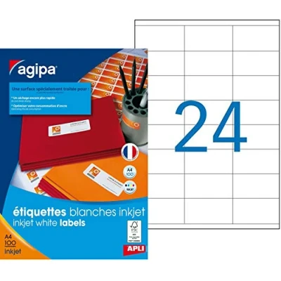 APLI 102497 2400 Inkjet Labels with Rounded Corners, 70 mm x 35 mm, White