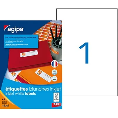 APLI 102503 100 Inkjet Labels with Rounded Corners, 210 mm x 297 mm, White