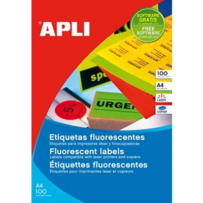 APLI 11750 Permanent Fluorescent Green Labels 210.0 x 297.0 mm 100 Sheets