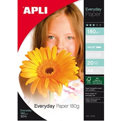 APLI 12080 Photo Paper Everyday A4, Pack of 20 Sheets, 180 g, Glossy Finish, Suitable for Inkjet Printers