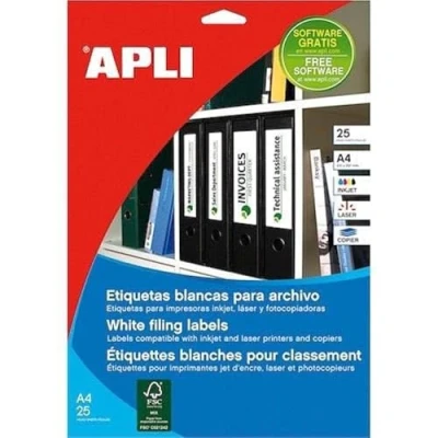 APLI 1232 White File Labels 190.0 x 38.0 mm 25 Sheets