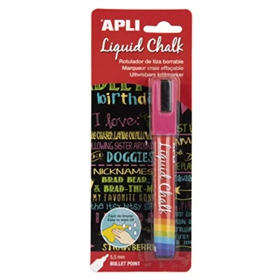 APLI 17623 Erasable Chalk Markers, 5.5 mm, Liquid Round Tip, Pink (Fuchsia)