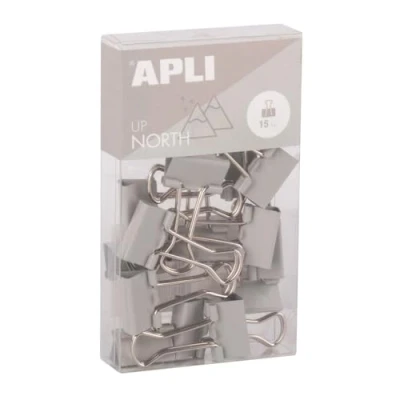 APLI 19982 19 mm Tempered Steel Folding Tongs Pack of 15 in Grey Minimalist Design, Modern Organization Upnorth Desk Accessories