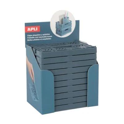 APLI 20236 Pack of 10 small folding and stackable boxes for tidying decorating home spaces, size: 140 x 60 105 mm, blue