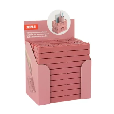 APLI 20274 Pack of 10 small folding and stackable boxes for tidying decorating home spaces size 140x60x105mm coral pink