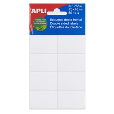 APLI 2554 White Double Front Labels (25 x 40) 5 Sheets