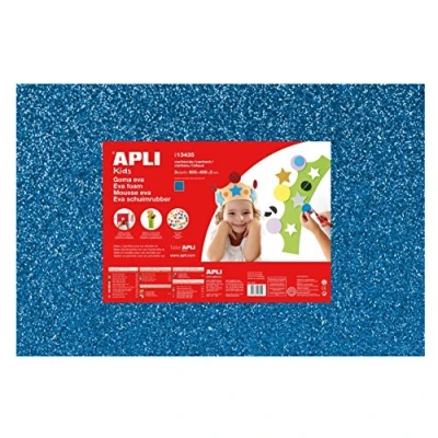 EVA rubber size 60 x 40 cm in blue glitter No sheets per pack: 3. It is soft, flexible, easy to cut, stick and paint Waterproof and heat moldable The basic material for making fofuches, masks, crowns, costumes and all kinds of crafts