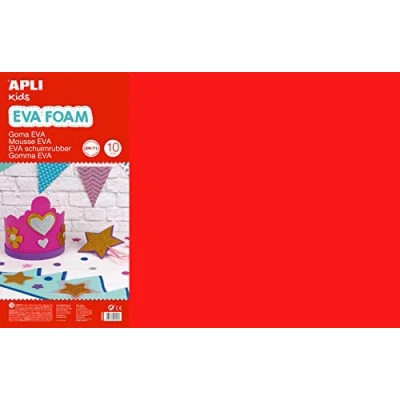 Pack of EVA rubber size 60 x 40 cm in multi-coloured colours. Colours: Red, Yellow, Grey, Black, Orange, Lilac, Pink, White, Green and Blue No sheets per pack: 10 (1 per colour). It is soft, flexible, easy to cut, stick and paint, waterproof and heat molding. The basic material for making fofuches, masks, crowns, costumes and all kinds of crafts