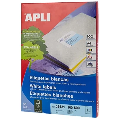 Apli 707522 Box of 100 white labels for printer 63.5X46.6