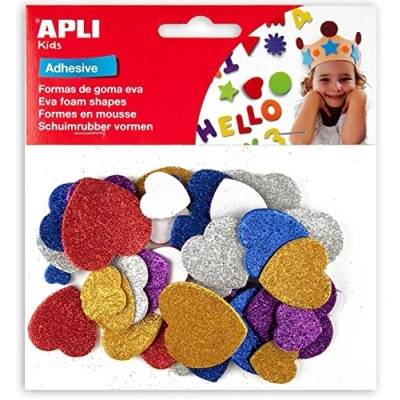 APLI Kids 15139 Bag Shapes EVA Adhesive Printed Heart Shapes, 40 Units