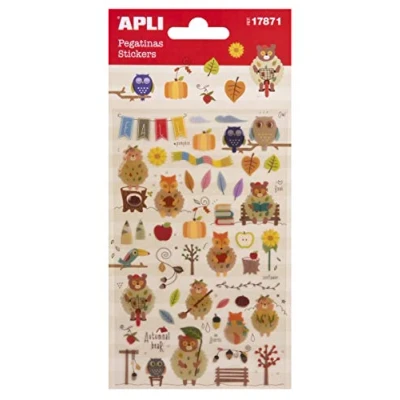 Bag of autumn stickers with epoxy finish. Each bag contains 1 sheet with 47 stickers. Permanent adhesive stickers, ideal for scrapbooking work, sticking to books and folders, decorating albums, letters, invitations and cards. Hours of fun for the little ones who will also develop their fine psychomottricity and stimulate their creativity, ingenuity and narrative ability.